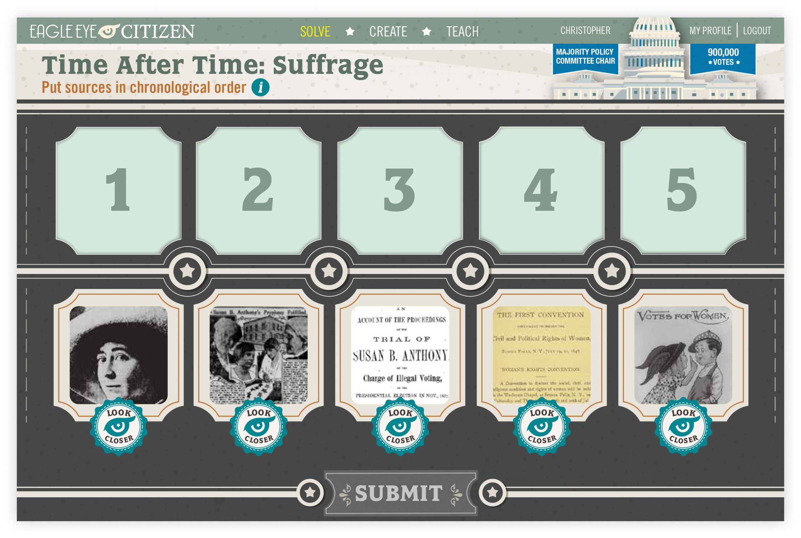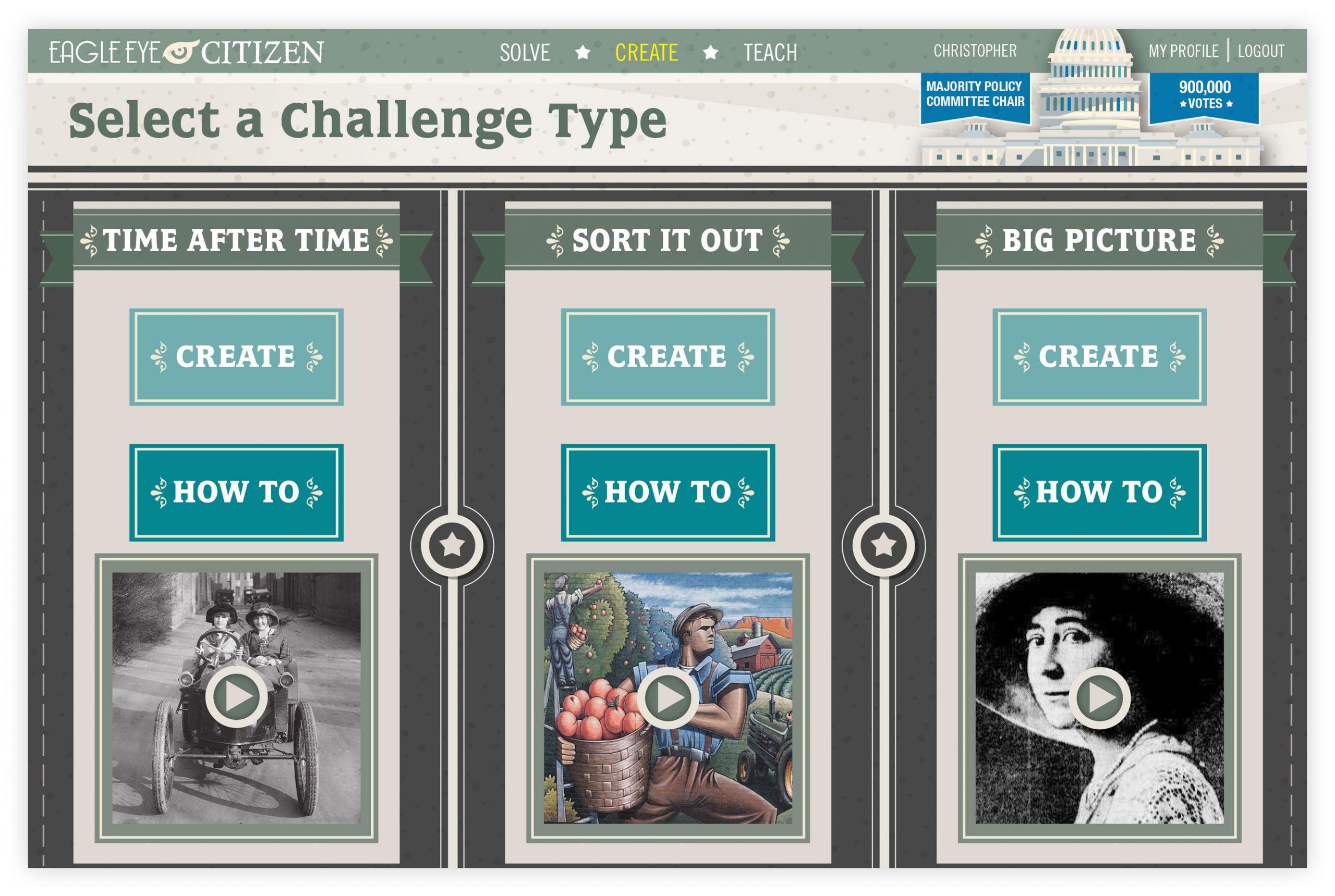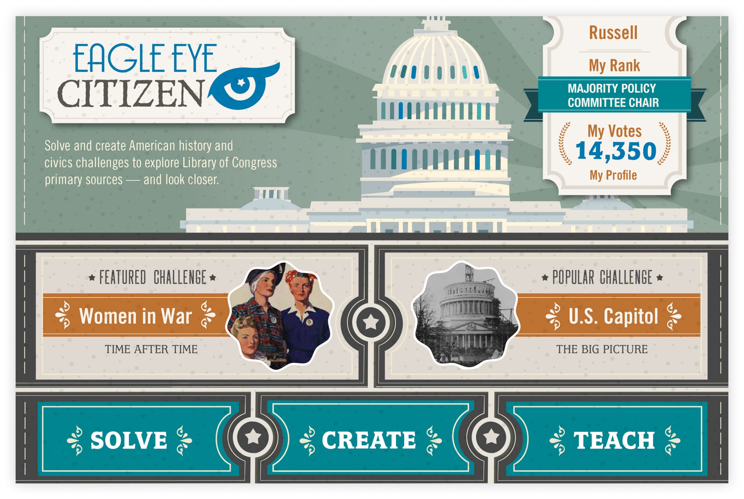 Eagle Eye Citizen engages middle and high school students in solving and creating interactive challenges about Congress, American history, civics, and government with Library of Congress primary sources in order to develop students’ civic understanding and historical thinking skills.
